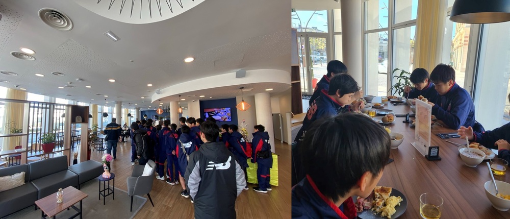 Hoje fizemos um jogo treino contra um clube local da cidade. Graças à iniciativa do Sr. Oguri, que queria que nos acostumássemos ao campo que será usado na competição, ele pediu diretamente ao presidente que organiza o torneio, e conseguimos alugar um campo inteiro para realizar o jogo treino.