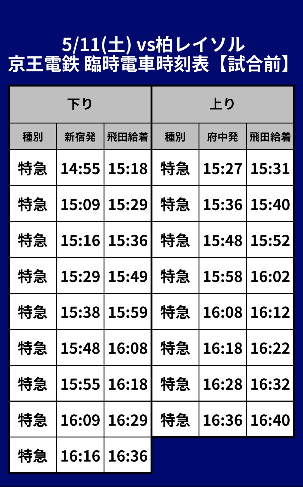 11 de maio (Sáb) 2024 Meiji Yasuda J1 League Rodada 13 vs Kashiwa Reysol (Kickoff às 17:00 / Ajinomoto Stadium) informações sobre o transporte temporário (trem), ônibus shuttle e ônibus de linha serão fornecidas.