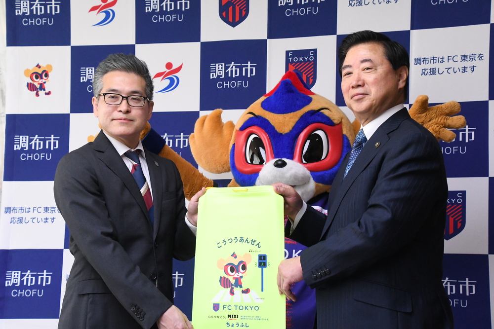Hoje, dia 24 (Seg), foi realizada uma cerimônia de entrega na Prefeitura de Chofu, com a presença do prefeito Nagatomo da cidade de Chofu, do presidente Kawagishi do FC Tokyo e do mascote da equipe TOKYO DOROMPA.
