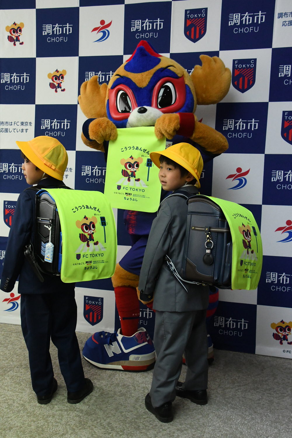 Gostaríamos de contribuir para a prevenção de acidentes de trânsito entre as crianças da cidade de Chofu, doando capas originais de mochila da FC Tokyo para cerca de 2.300 alunos que ingressarão no 1º ano do ensino fundamental.