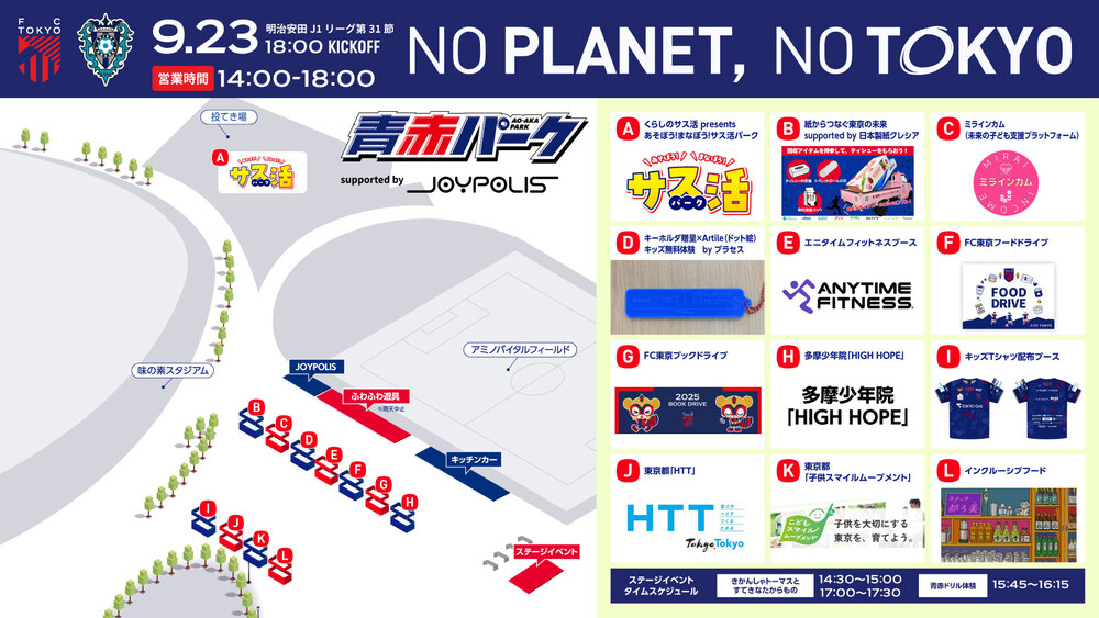 No dia 23 de setembro de 2025 (Ter feriado), na 31ª rodada da J1 League Meiji Yasuda 2025, contra Avispa Fukuoka (início às 18:00 / Ajinomoto Stadium), será realizado o evento 『NO PLANET, NO TOKYO』.