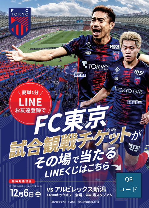 Distribuiremos folhetos com sorteio LINE para ganhar ingressos para o jogo contra Albirex Niigata em 6 de dezembro (Sáb) nas proximidades do estande.