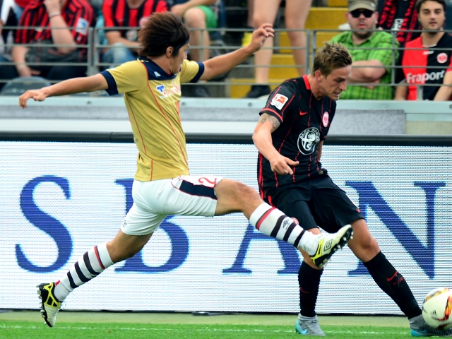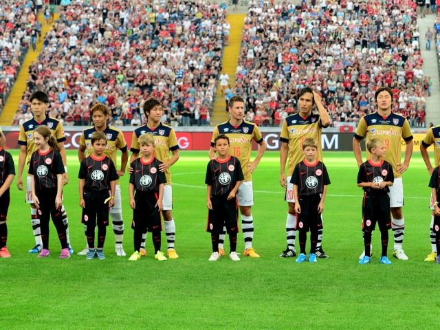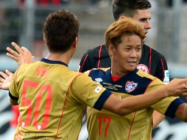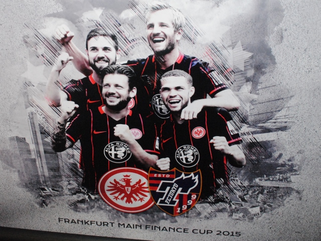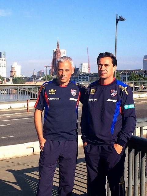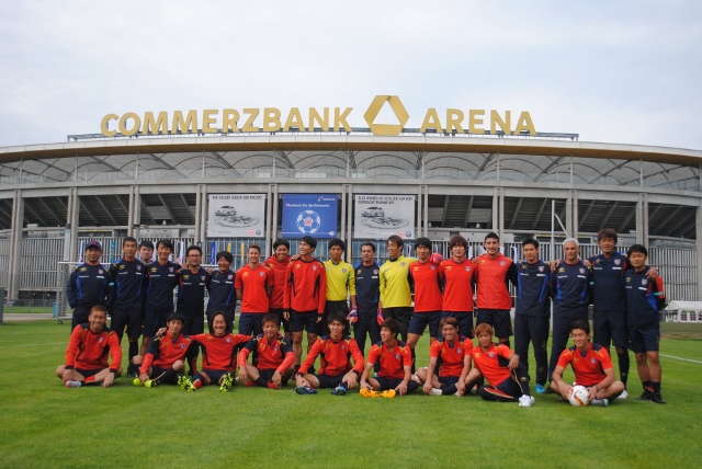 2015.8.07[Informações da Partida] Jogo amistoso de 2015 contra Eintracht Frankfurt Cartaz de anúncio de jogo colado na cidadeArena CommerzbankJogadores ouvindo as instruções do técnico Massimo durante o treinoTreinamento de explosãoFoto em grupo de jogadores e equipePresidente Ōgane e GM Tateishi participaram do evento de conversa antes da partidaJogadores alinhados antes da partidaO jogador Yoshimoto bloqueia o ataque do adversário com um "apagão total"Na cidade, o técnico Massimo e o treinador BrunoJogador Kono que criou o gol