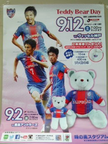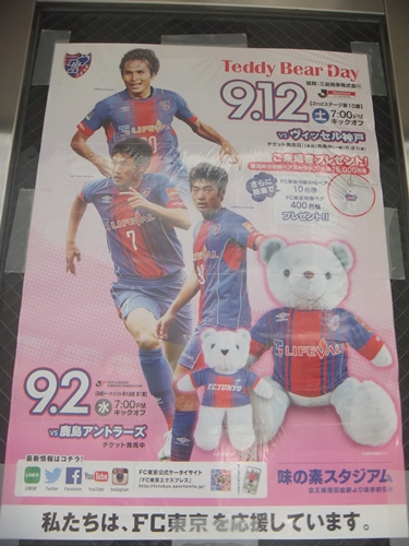 Aos membros da equipe, obrigado por reportar a exibição do pôster "Vamos lotar o Ajinomoto!". Contamos com seu apoio contínuo na temporada 2015. 【Até 9/9 (Qua) 17:20】