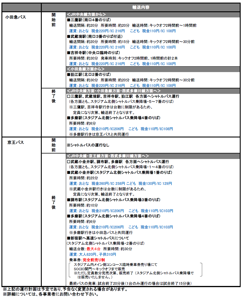 24/11(Sáb)2018 Meiji Yasuda Life Insurance Company J1 League 33ª rodada vs Kawasaki Frontale (kickoff às 14:00 / Ajinomoto Stadium) informamos sobre os ônibus shuttle e ônibus de linha que operarão neste dia.