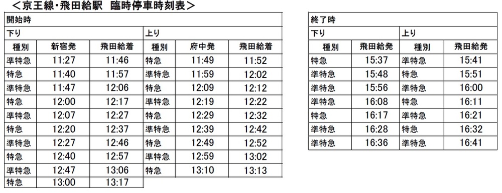 Sentido descente… 7 trens expressos e semi-expressos partindo de Tobitakyu entre 15:37 e 16:36