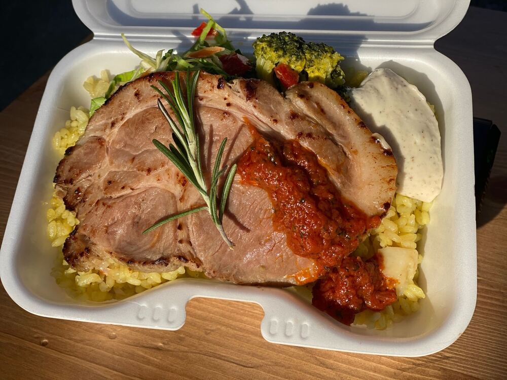 ・Bife de fraldinha bovina & arroz com manteiga de alho 1.200 ienes