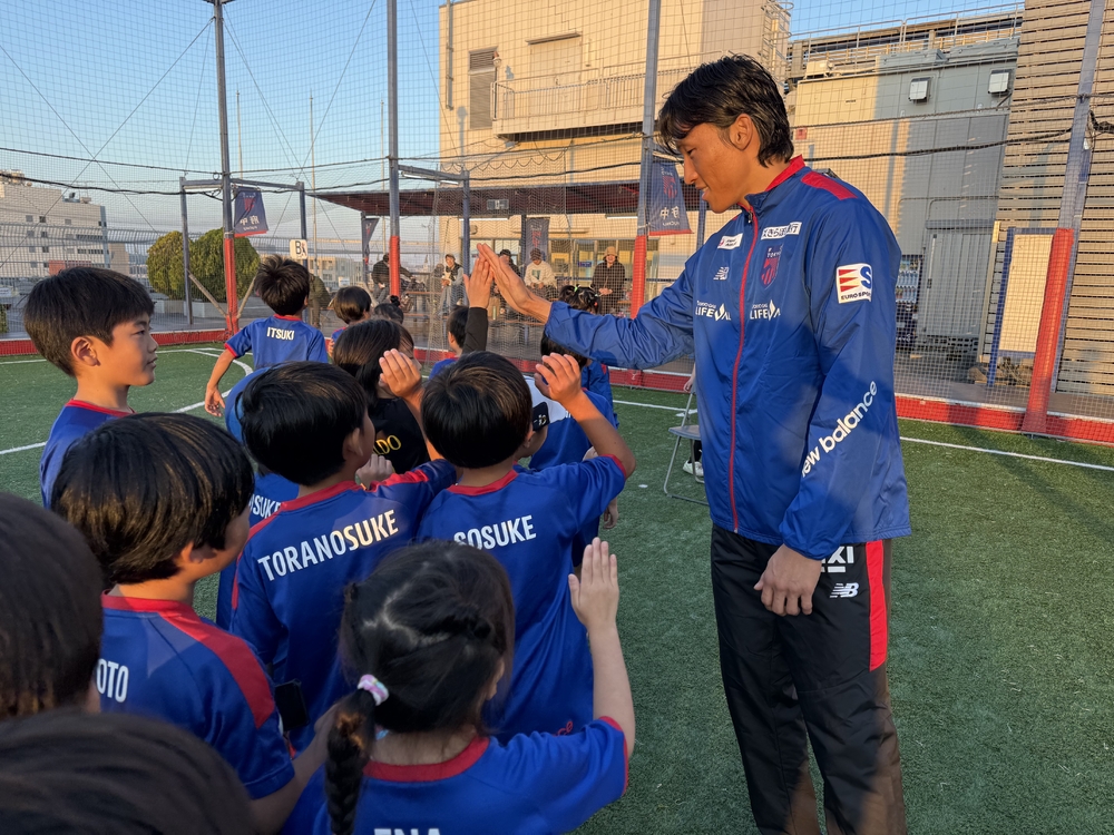 Na Escola de Futebol e Futsal do FC Tokyo, continuaremos a realizar atividades que cultivam os sonhos e objetivos das crianças por meio da interação com os jogadores do time principal.