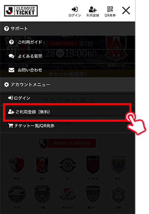 1. Faça login no site de ingressos da J-League