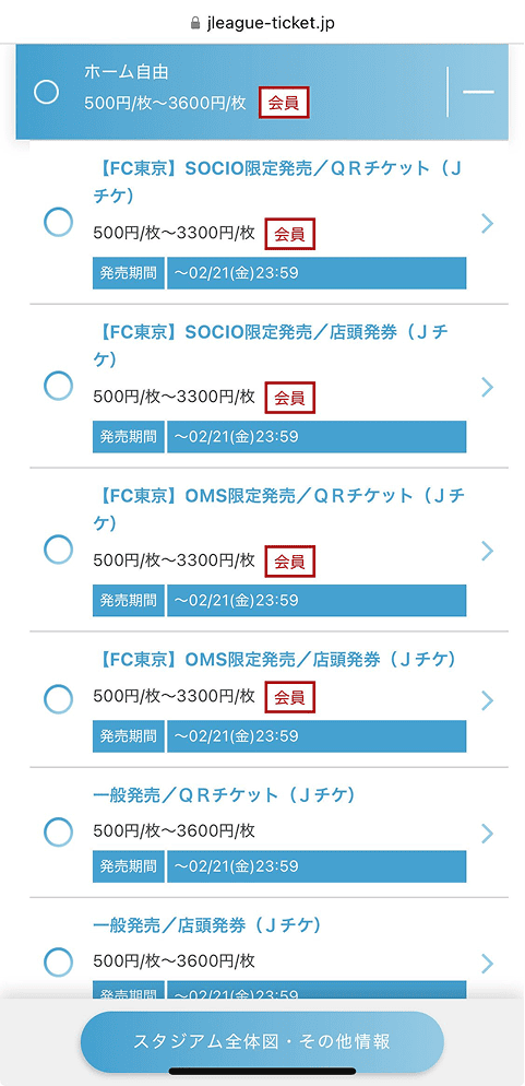 2. Pressione o tipo de assento que deseja comprar → selecione o método de emissão desejado indicado como sócio