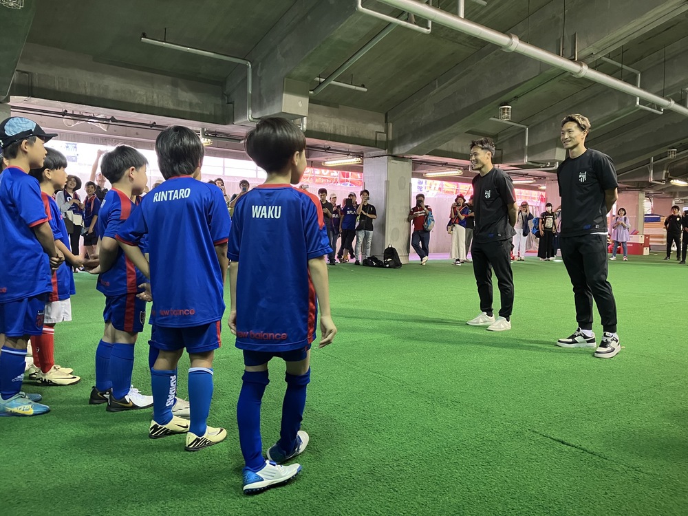 また今回は特別にキッズマッチ終了後に、スペシャルゲストとして小柏剛選手、小泉慶選手がスクール生のもとを訪れて激励のコメントを送ってくれました。