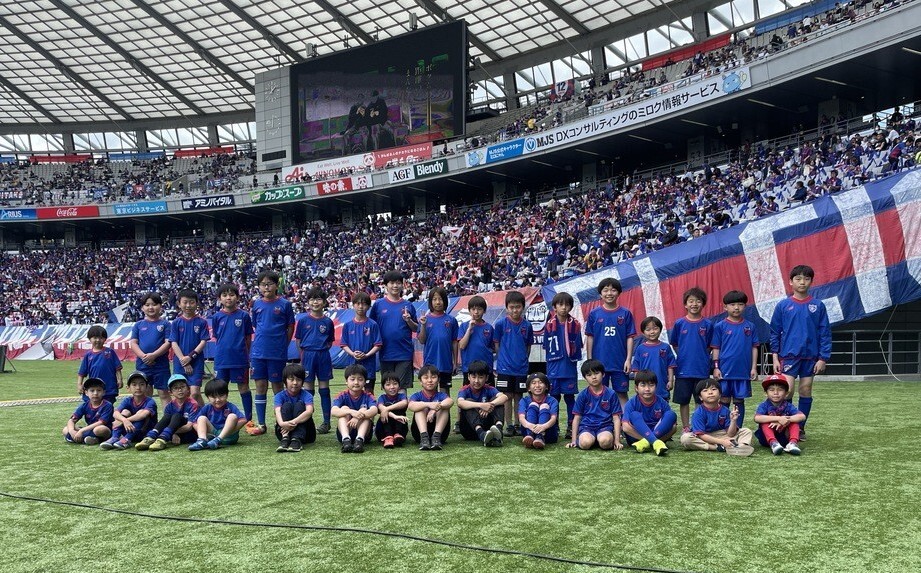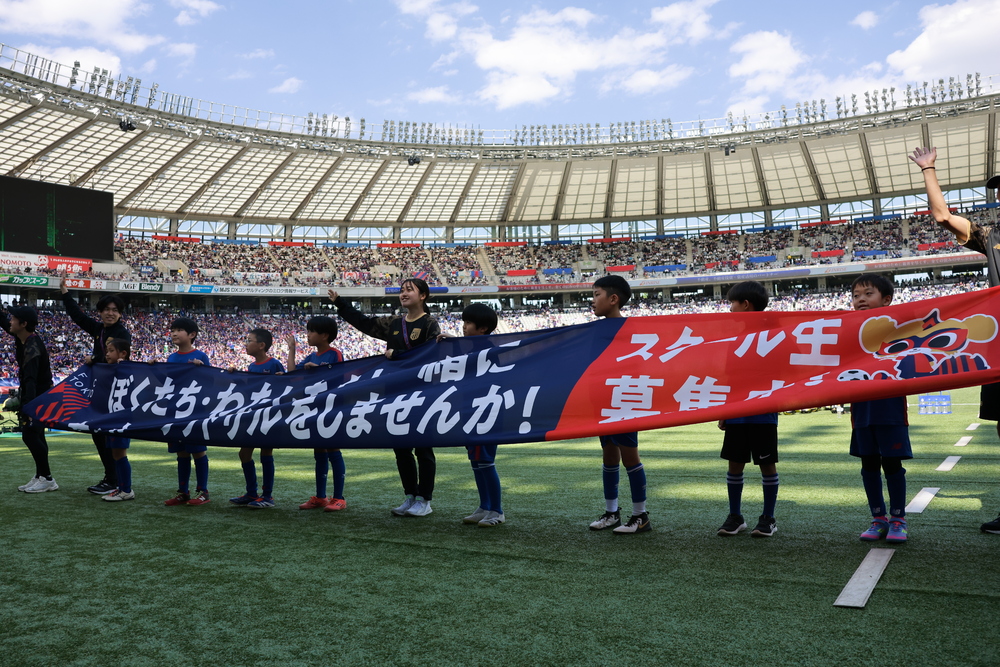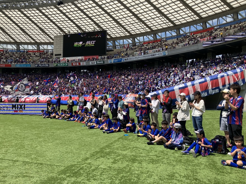 ハーフタイムにFC東京のスクールのバナーを持ってスクールのアピールをしました!