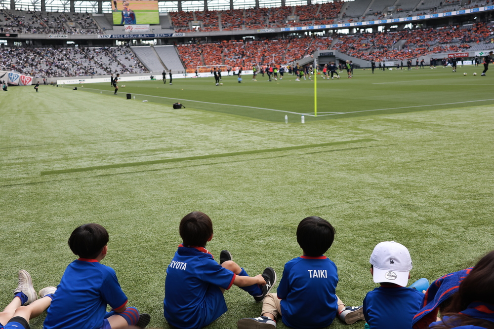 スクール生は、間近で見る選手たちの緊張感や、ボールを蹴る音、選手の声など、