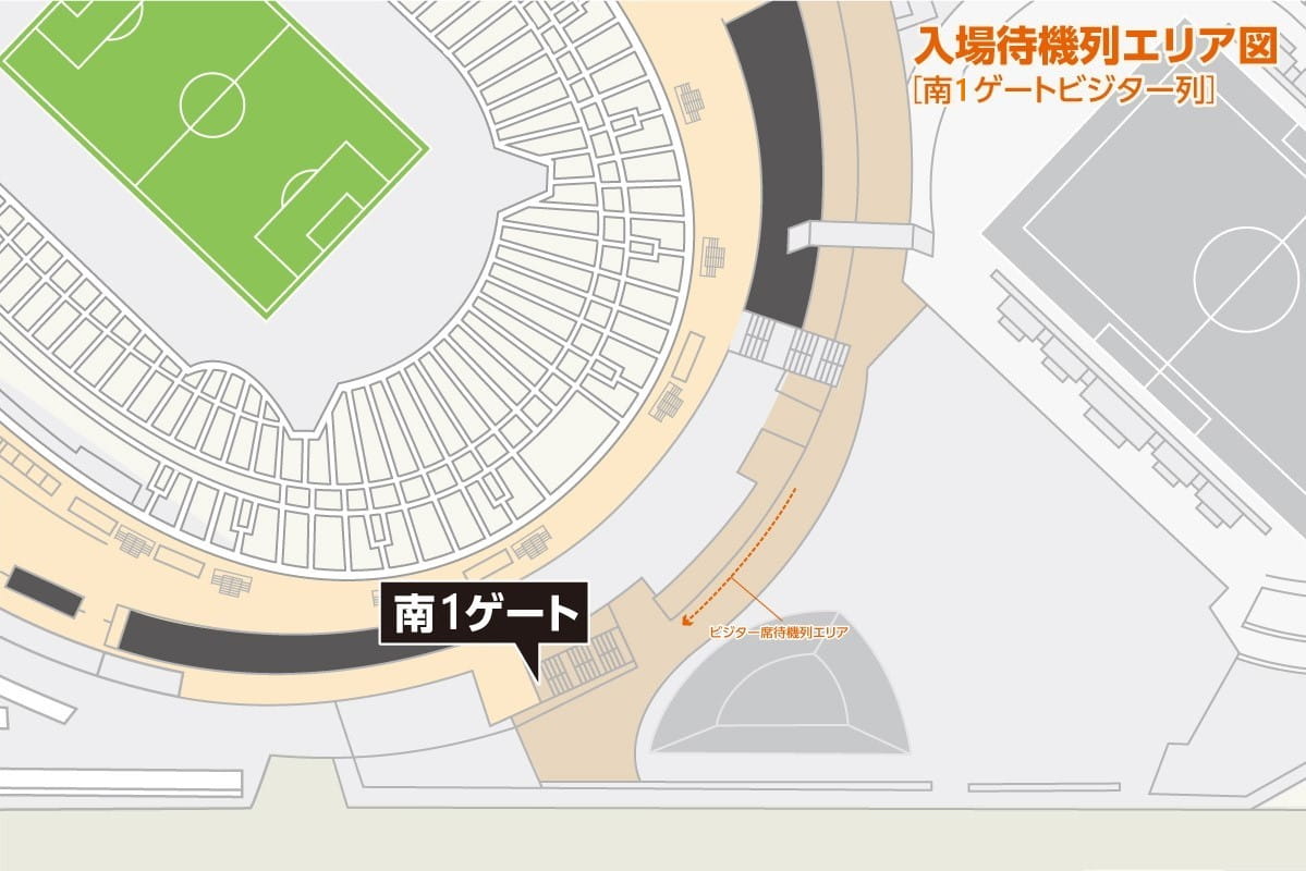 | 南1ゲート | ビジター席、メインSS指定席南側およびメインS指定席南側のチケットをお持ちでビジターチームを応援される方 |