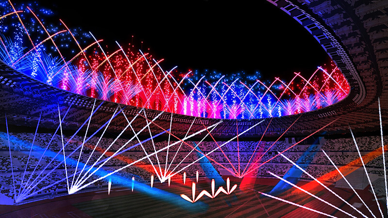 从体育场屋顶上,将从360度角度发射约1500发特殊效果烟花。