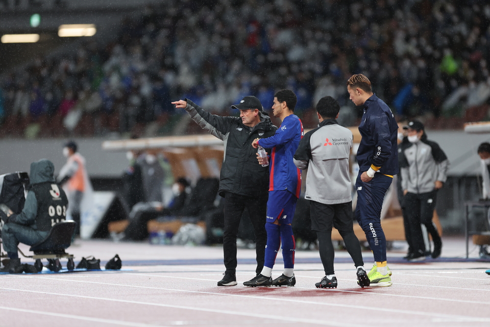 另一方面,由于缺乏比赛节奏,比赛中仍然经常出现无法摆脱对方追击的情况。因此,为了避开对方的逼抢,球队利用了中长距离传球。青木表示:“当不得不绕外线传球时,会有被对方逼抢包夹的位置。那时,后方的两名中后卫可以开球,我希望两名内侧中场在接到长传球时,能够处于一个能够抢第二落点的距离。我认为如果能更顺畅地调整传球后抢球的位置和从后方连接时的位置,那就太好了。”