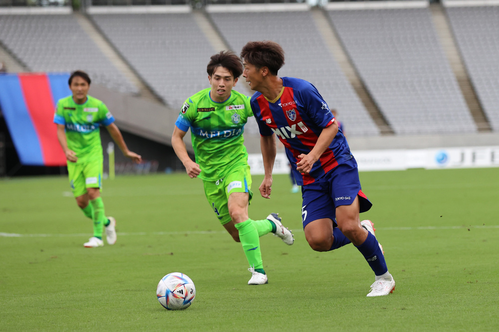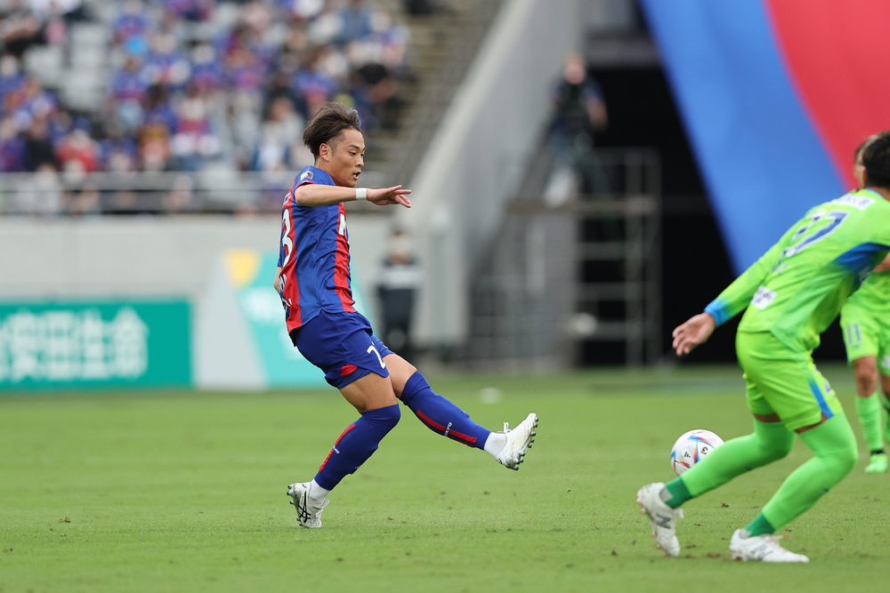 双方的传球和压迫节奏比上半场更快,东京队冷静地控球,寻找时机加速进攻,瞄准对方球门。下半场第10分钟,塚川选手在禁区左侧区域切换位置,将球带到球门线附近并传中。等待接球的迭戈选手头球攻门,但未能完全击中,球偏向球门右侧。