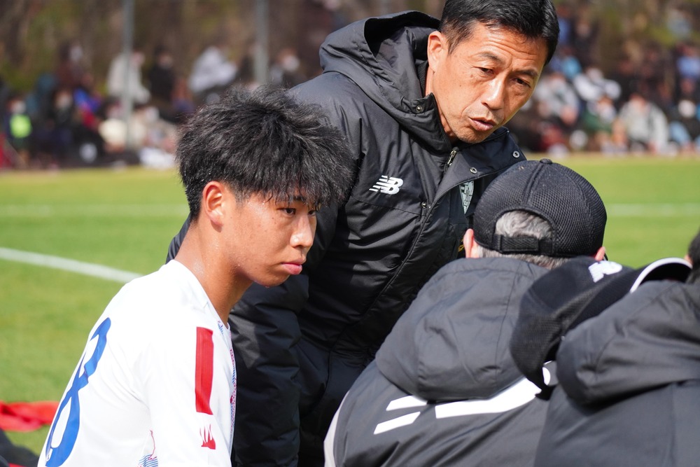 〈在练习赛中,接受Albert PUIG ORTONEDA教练指示的荒井悠汰选手〉