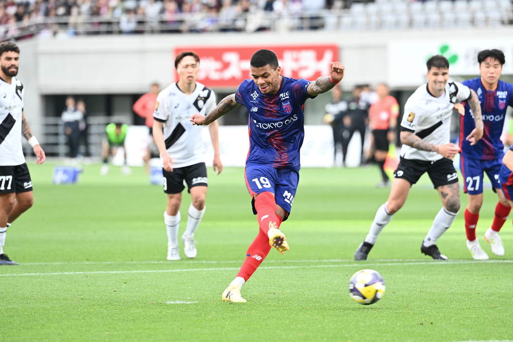 屏息凝视味之素体育馆。背号19号以仿佛进入状态般专注的神情站在点球点上。当右脚果断一击射入网窝,全场观众起立欢呼,喜悦溢满全场。紧接着响起胜利的凯歌《不眠之城》。多次制造机会的王牌球员在最后关头完成了重要任务,连续两场联赛进球带领球队取得胜利。至此,东京队自第3轮对阵名古屋Grampus以来,首次在味之素体育馆获胜,并且本赛季首次实现连胜。