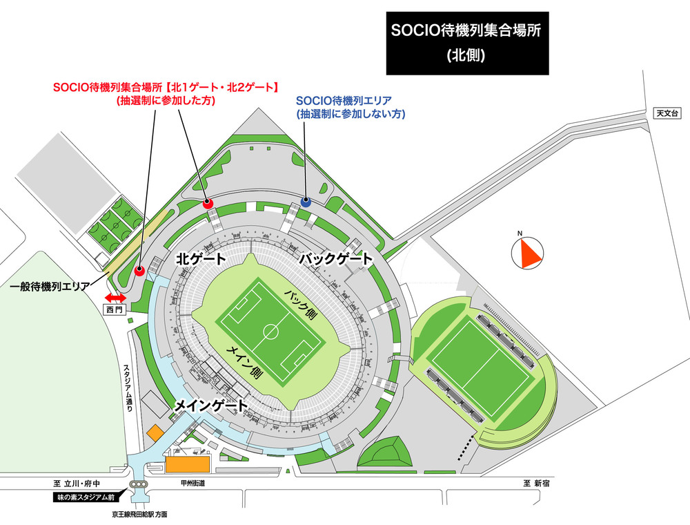 ・请在SOCIO开门时间前1小时30分钟通过北1门或北2门进入体育场内。