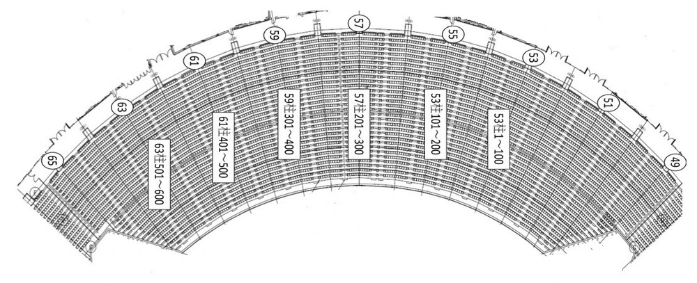 ・看台内设有按抽签号码顺序划分的座位区域(请参照柱号)。请确认您的抽签号码后,在对应区域内等待。※原则上每100号为一个区块。