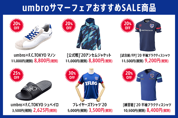 限量发售带有金色徽章的限定设计包,内含总价超过6,000日元的umbro商品及FC东京周边商品的“umbro夏季礼包”!