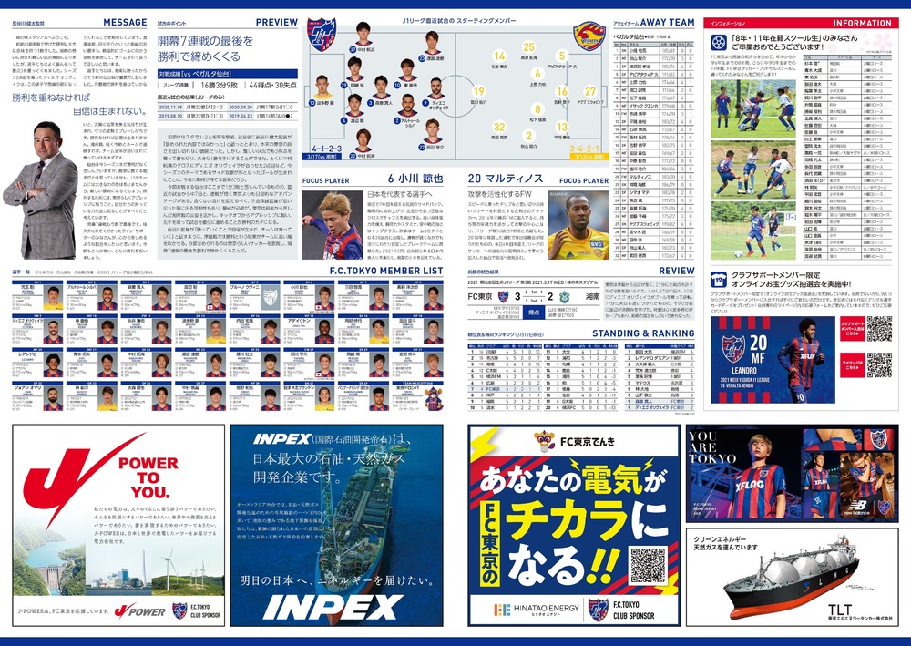 3/21(周日) 2021明治安田生命J1联赛 第6轮 vs Vegalta仙台(13:00开球/味之素体育馆)的官方比赛日程节目,现通知如下。