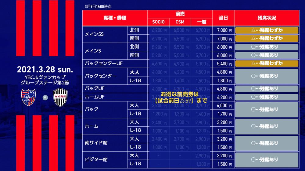 此外,现场不出售当日票。仅通过FC东京(J联赛票务)销售。