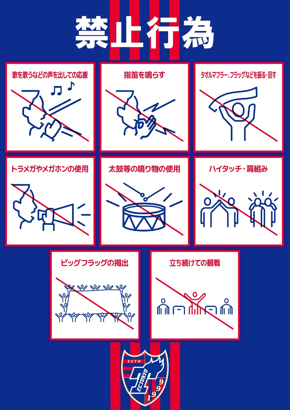 ※鼓、助威拍扇等可在座位上敲打的打击乐器,是否允许使用由主管俱乐部决定,但FC东京为防止感染扩散及避免观众间纠纷,仍将其视为禁止行为。