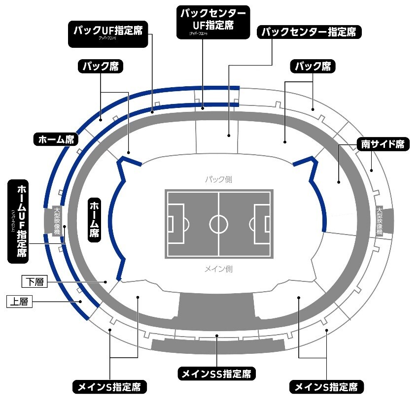 后看台中心UF指定席、后看台中心指定席、后看台UF指定席、后看台席、南侧席、场边席