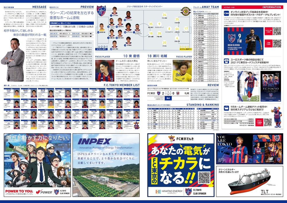 9月12日(周日) 2021明治安田生命J1联赛 第28轮 vs 柏太Reysol(19:00开球/味之素体育馆)的官方比赛日程节目,现通知如下。