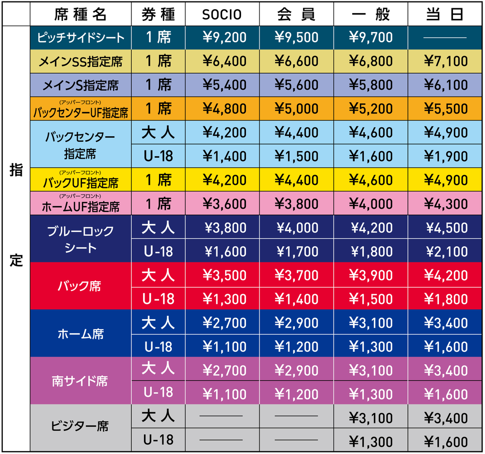 根据J联赛新冠病毒感染症应对指南,虽然规定“前后左右间隔约1个座位”,但我们将以左右空出3个座位的间隔进行销售。