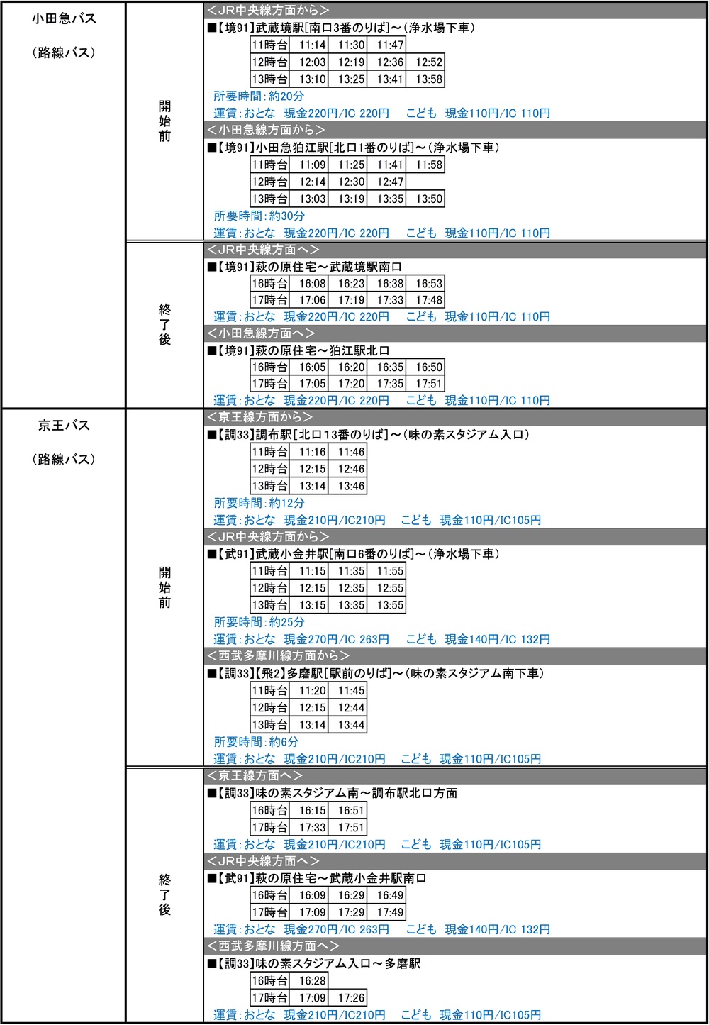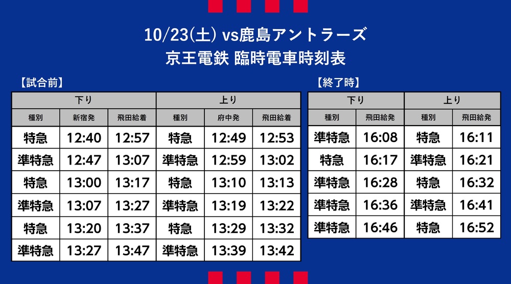 10月23日(周六) 2021明治安田生命J1联赛 第33轮 vs鹿岛Antlers(14:00开球/味之素体育馆)期间运营的临时交通接驳(铁路)、穿梭巴士・线路巴士相关信息。