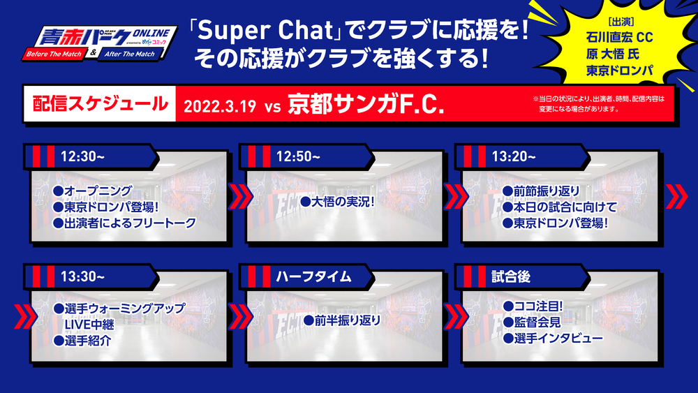 本次对阵京都Sanga F.C.的比赛中,不仅有J联赛,还有许多海外足球比赛的现场解说,同时也是FC东京应援节目的嘉宾,原大悟先生!
