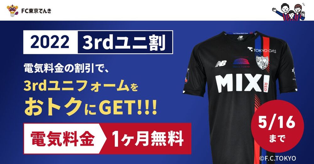 2022赛季第三套球衣已预订或计划购买的用户,可享受电费折扣活动,欢迎借此机会申请“FC东京电力”!