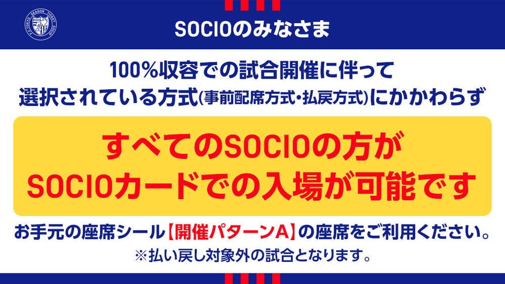在一般开门之前,将对SOCIO及法人年票购买者实施优先入场。