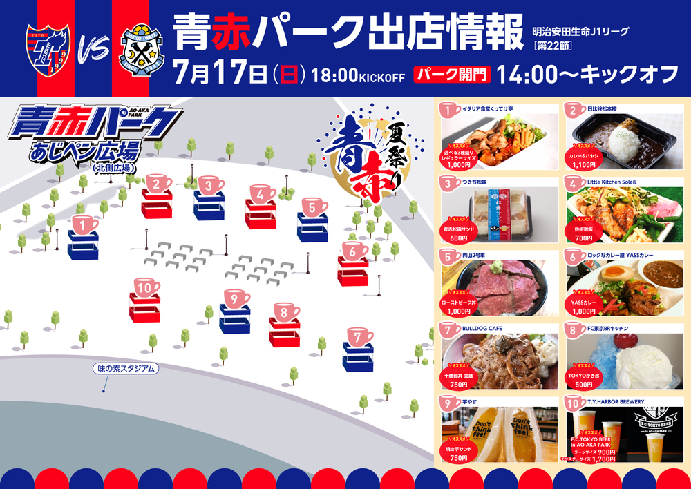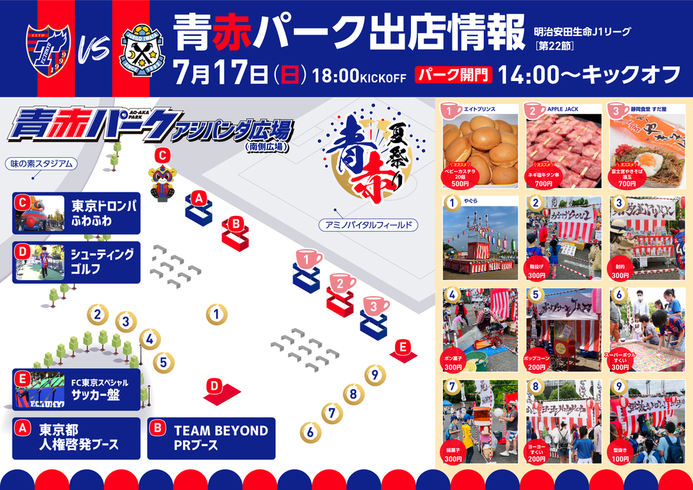 2022年7月17日(周日) 明治安田生命J1联赛 第22轮 vs Júbilo磐田(18:00开球/味之素体育馆)将举办AO-AKA PARK!