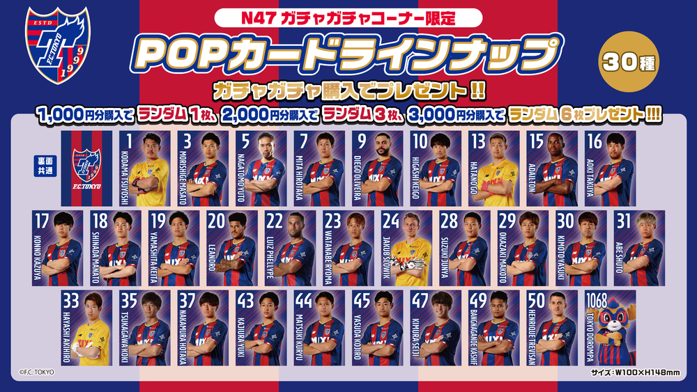 2022赛季,在主场比赛中,胜利比赛后,在体育场内主场侧商品店购买FC东京商品满1,500日元(含税)以上,即赠送1枚胜利硬币!!