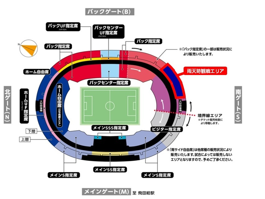 ・雨天时观赛区为自由席