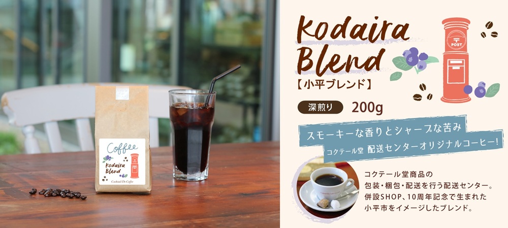 小平混合咖啡是为纪念Cocktail堂商品包装、打包、配送的配送中心及附设商店成立10周年而诞生的,以小平市为形象的混合咖啡。