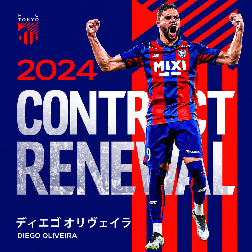 此次FC东京宣布已与Diego OLIVEIRA球员达成2024赛季的合同协议。