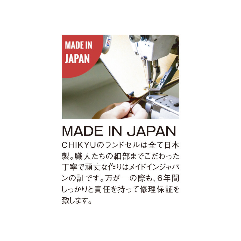 CHIKYU的书包全部日本制造。工匠们对细节的精心打磨和坚固的制作是日本制造的证明。即使发生意外,我们也会负责地提供长达6年的维修保证。