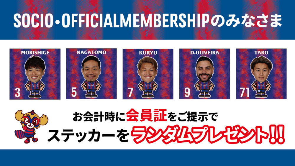 2024赛季,主场比赛中,胜利比赛后,在主场各商品售卖点购买FC东京商品满2,000日元(含税)以上,即赠送1枚胜利硬币!!