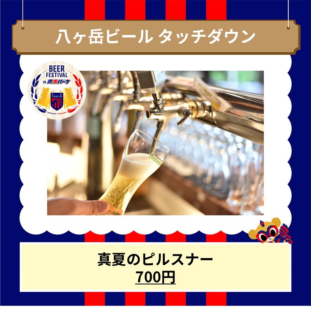・八岳啤酒 Touchdown 的“冷萃咖啡拉格”在8月11日(周日祝)川崎Frontale比赛中售罄,因此在8月17日(周六)东京Verdy比赛中将销售“盛夏皮尔森啤酒”。