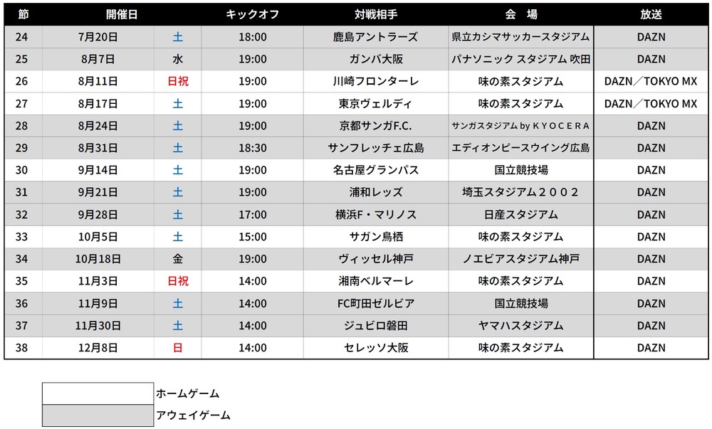 关于2024明治安田J1联赛下半赛程,现已决定,特此通知。