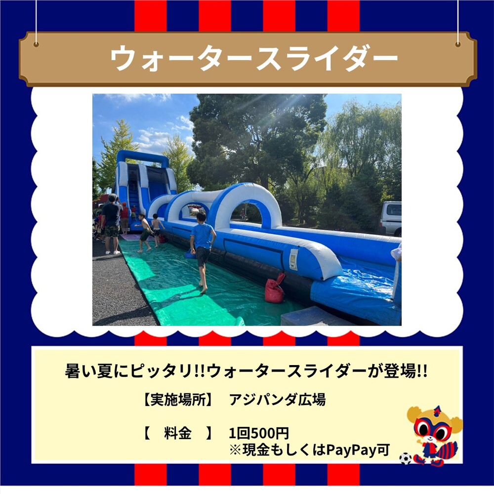 8月11日(周日祝) 2024明治安田J1联赛 第26轮 川崎Frontale战 (19:00开球/味之素体育馆)将举办AO-AKA PARK的游乐设施信息通知。