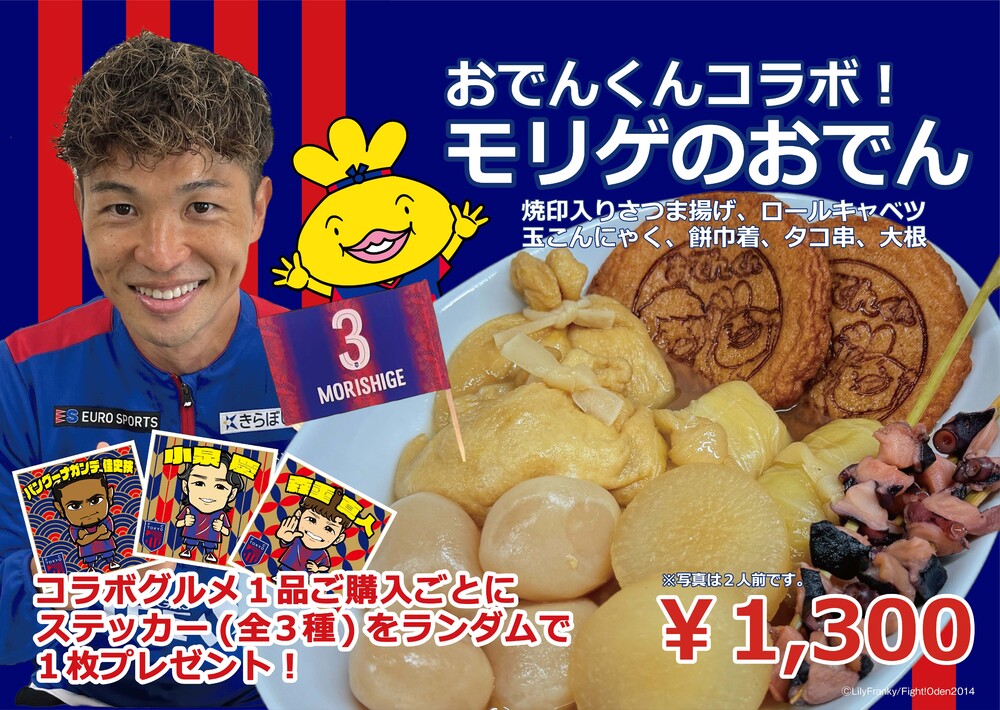 ・12月8日(周日)Cerezo大阪战的「FC TOKYO FOOD FACTORY」将限定当天销售森重选手合作美食「关东煮君合作!森重的关东煮」。