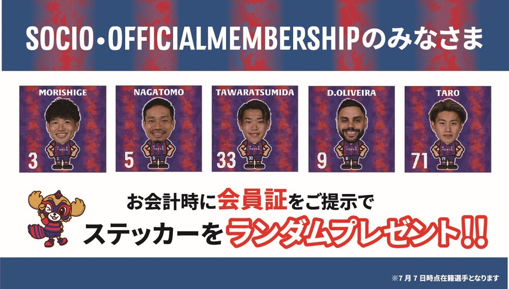 2024赛季,主场比赛中,胜利比赛后,在主场各商品售卖点购买FC东京商品满2,000日元(含税)以上,即赠送1枚胜利硬币!!