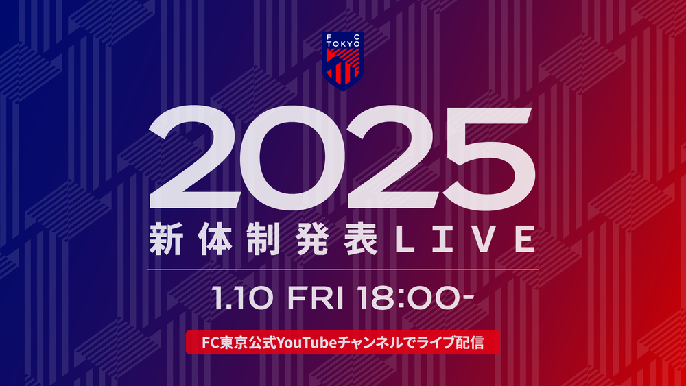 2025年1月10日(周五)将在FC东京官方YouTube频道直播“2025FC TOKYO新体制发布LIVE”。