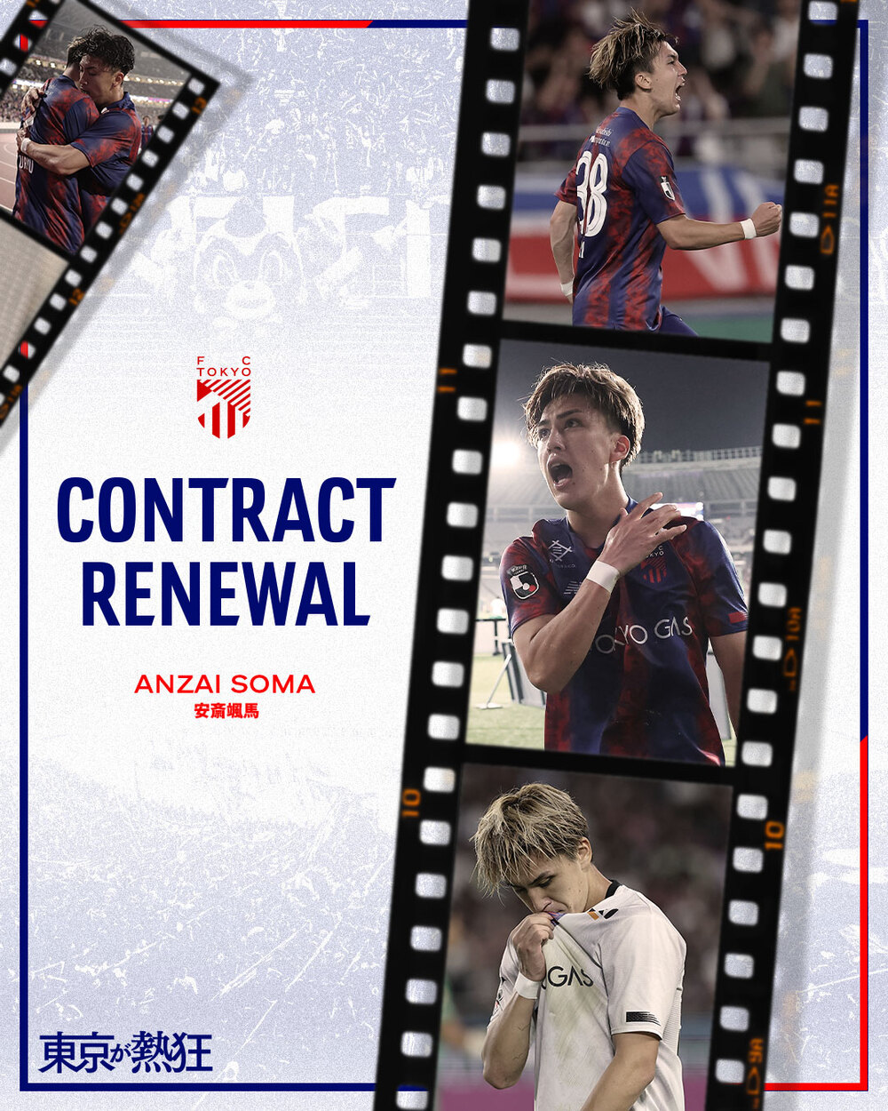 此次FC东京宣布已与安斋颯马选手达成2025赛季的合同协议。